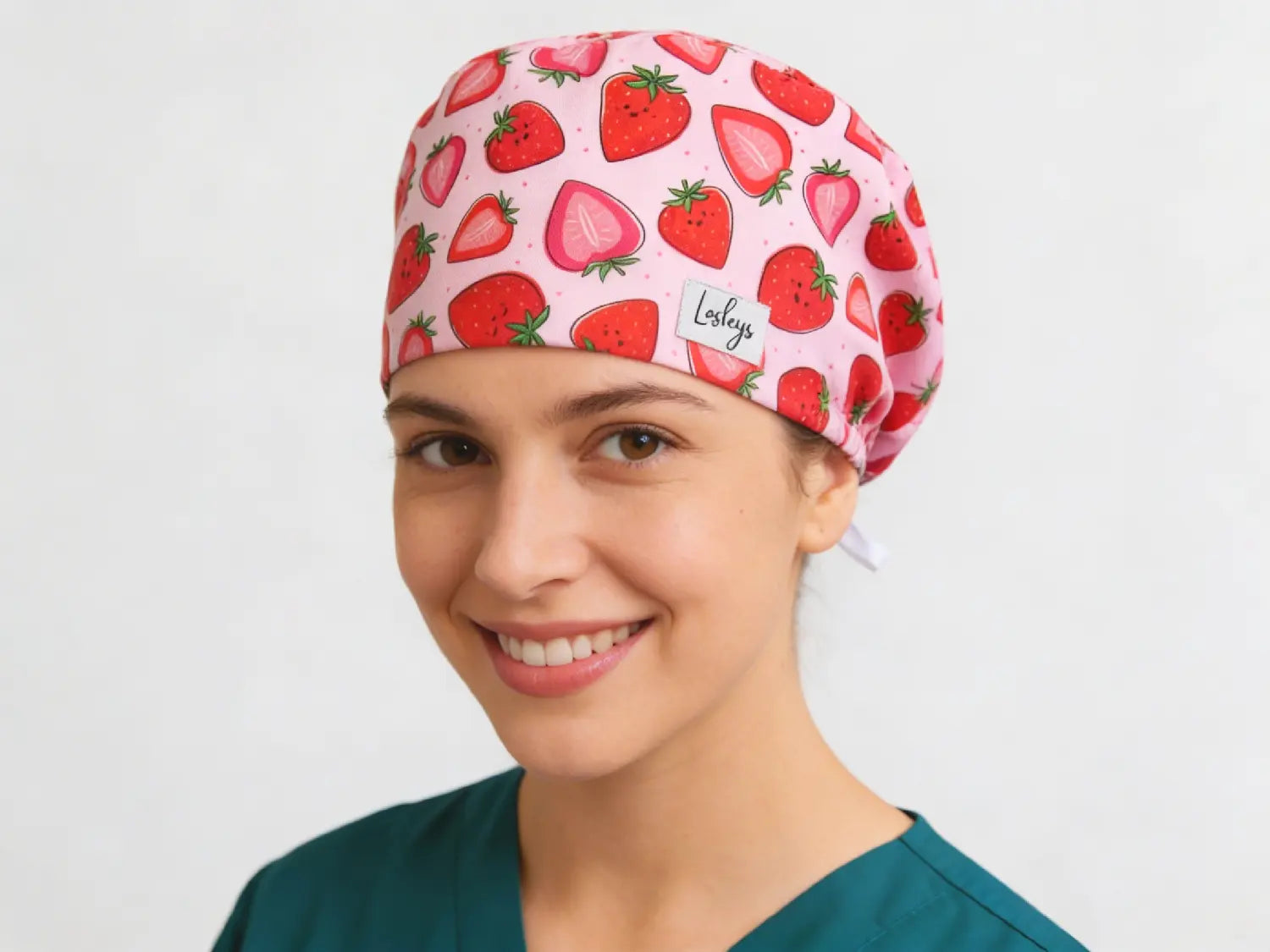 Die Komfort OP-Haube Strawberry bringt einen Hauch von Freude in Ihren Arbeitstag mit ihrem bezaubernden Design, das niedliche Erdbeeren und fröhliche Gesichter auf einem sanften hellrosa Hintergrund zeigt. Dieses verspielte Muster verleiht Ihrem professionellen Look einen Hauch von Spaß, während es leicht und frisch bleibt.