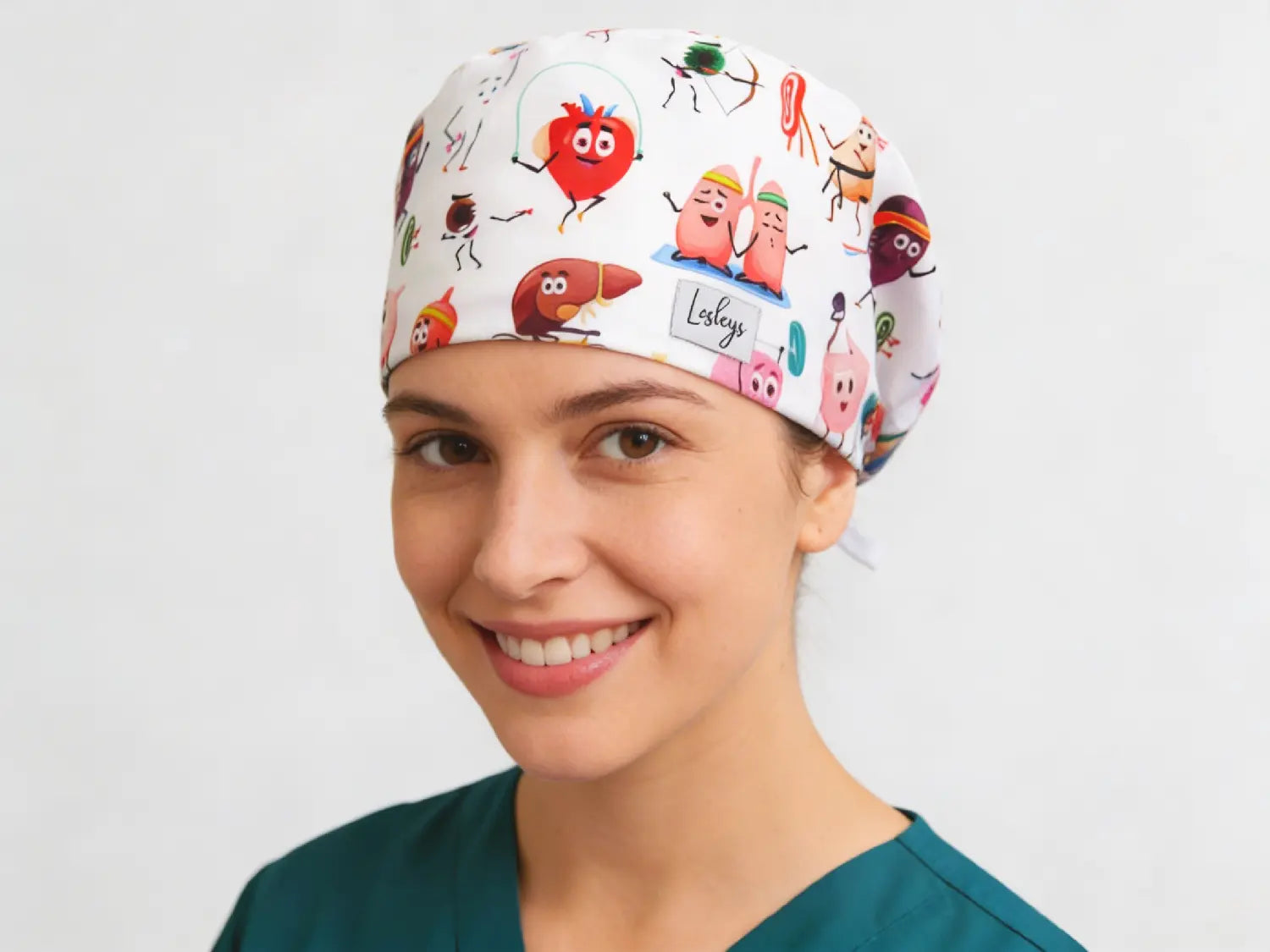 Der feste Halt wird durch das elastische Band und den Schnellverschluss auf der Rückseite gewährleistet, der für mittellanges bis langes Haar oder Dutt sicher sitzt. Außerdem absorbiert das eingenähte Handtuch-Schweißband Feuchtigkeit, sodass Sie den ganzen Tag über trocken und bequem bleiben. Die Komfort OP-Haube Healthy Organs vereint Langlebigkeit, Komfort und ein kreatives Design, um Sie in Ihrem Gesundheitsberuf mit einem Hauch von Spaß und Stil zu unterstützen.