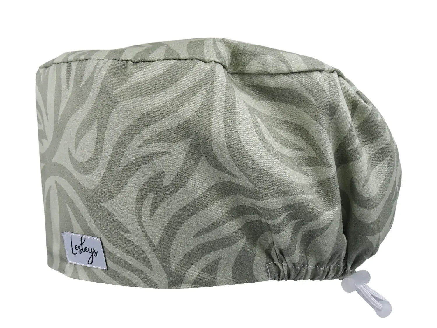 Die OP-Haube „Waves Terra“ wirkt ruhig, natürlich und modern: Das sanfte Wellenmuster in weichen Grüntönen erinnert an Erde, Salbei und Stein – perfekt für einen cleanen Look mit warmer Ausstrahlung.