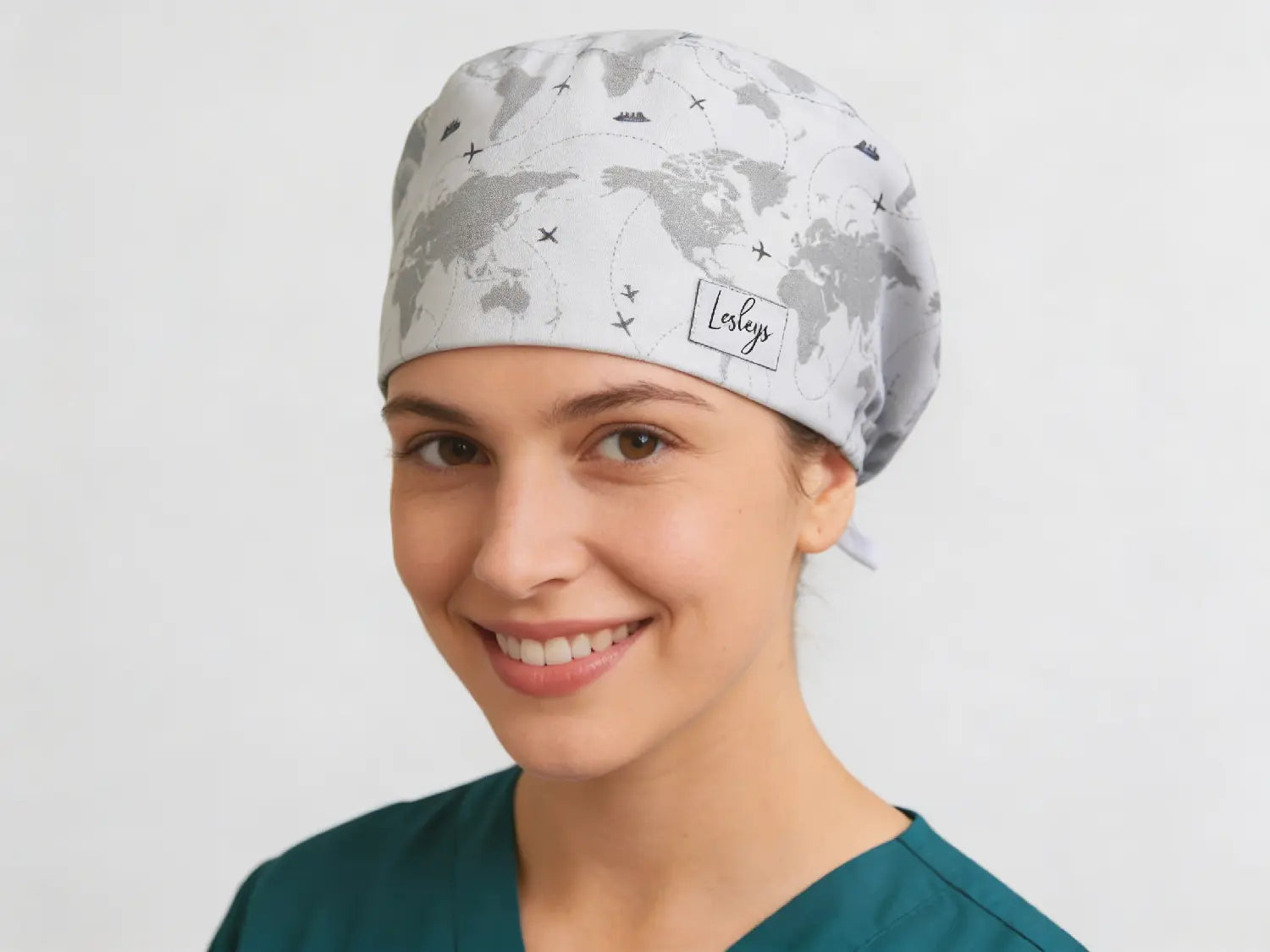 Die Komfort OP-Haube Worldwide ist für diejenigen entworfen, die Abenteuer und Reisen lieben. Mit einer grauen Weltkarte, die mit Flugzeugen, Schiffen und verschiedenen Reiserouten geschmückt ist, verkörpert diese OP-Haube ein Gefühl von Fernweh. Ob Sie ein Gesundheitsfachmann mit einer Leidenschaft für das Reisen sind oder einfach das einzigartige Design genießen, diese Mütze wird eine stilvolle und unterhaltsame Ergänzung Ihrer Garderobe sein.